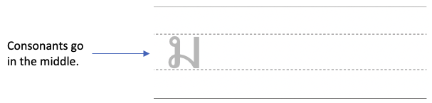 Second, consonants always go in the middle section.